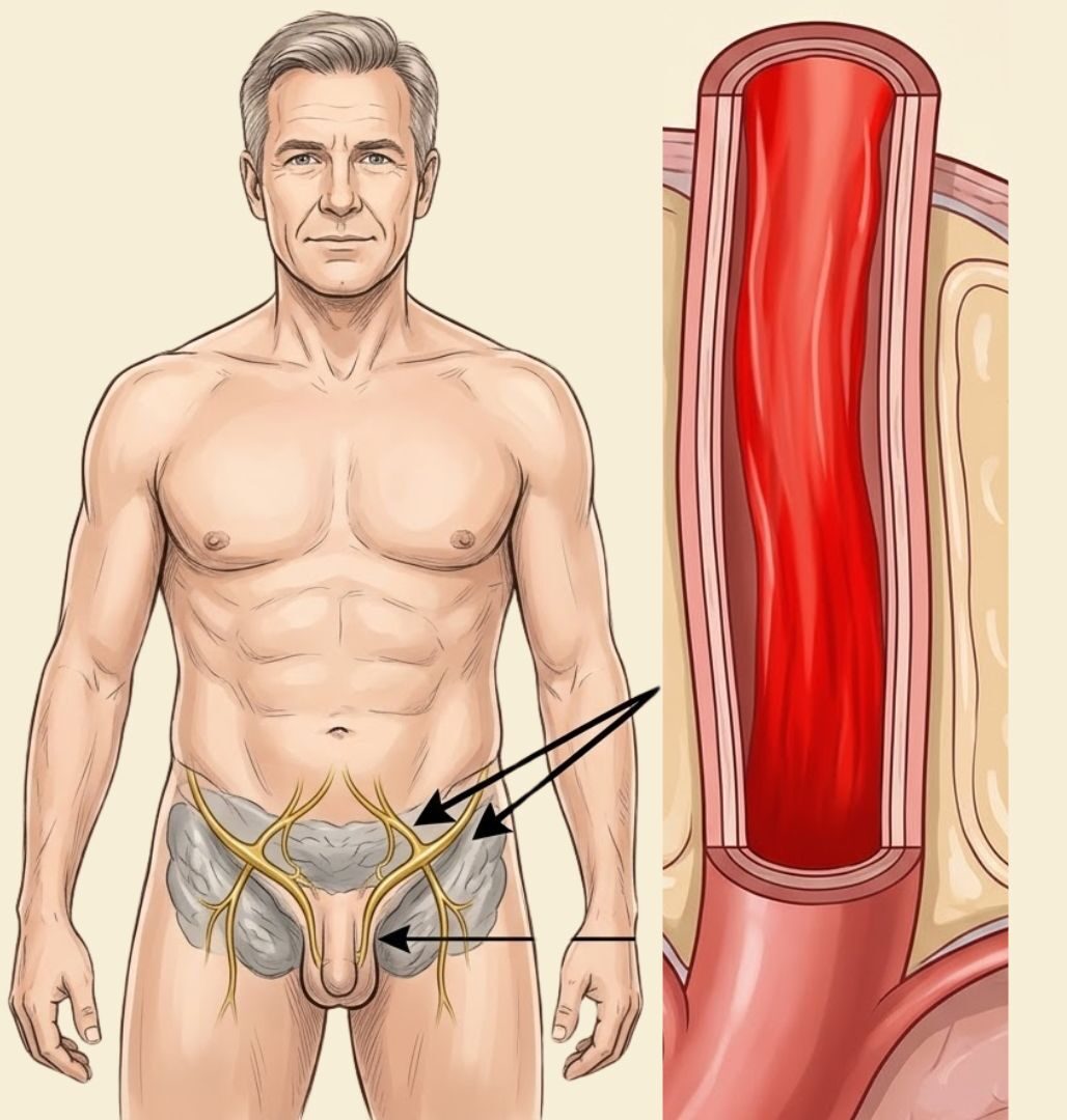 Chronic prostatitis — persistent inflammation of the prostate — creates sustained mechanical pressure on those nerves. Over time, this pressure disrupts nerve conduction in the same way that sitting on your arm for too long causes it to go numb — except that the effect is permanent rather than temporary, because the nerve fibres themselves are being physically compressed and chemically irritated over years.